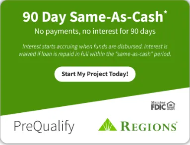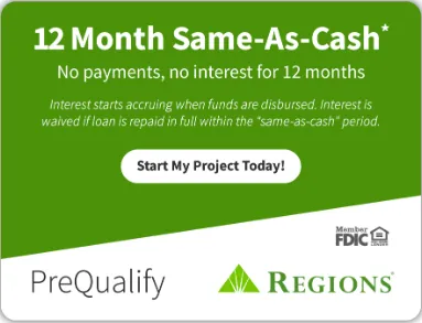 *Credit and loans provided by Regions Bank, Member FDIC, (650 S. Main St., Suite 1000, Salt Lake City, UT 84101) on approved credit, for a limited time. 19.99% fixed APR (provided however, APR will not exceed 15.99% for residents of New Jersey and 17.99% for residents of Florida and Wisconsin), effective as of May 2025, subject to change. Minimum loan amounts apply. Interest starts accruing when funds are disbursed. Interest waived if repaid in 365 days from first disbursement. When open line period ends, the balance becomes a fixed rate installment loan; repayment terms vary from 24 to 132 months. Actual loan term may be shorter if less than the full approved amount of credit is used. First monthly loan payment due 365 days after first disbursement. If no payments made during same-as-cash period and APR of 19.99%, monthly payments vary from $21.99 to $30.82 per $1,000 borrowed depending on term. The minimum monthly payment will be no less than $50.00.